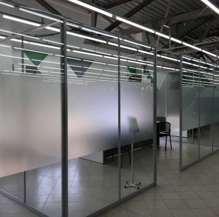 Готовые офисы в торговом зале, оборудованные на два рабочих места для работы с клиентами.